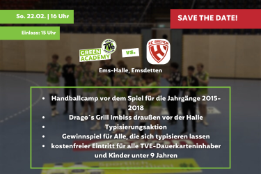 Ziel der GREEN ACADEMY ist es, Handballtalente so früh wie möglich zu fördern und entwickeln. Auf ihrem Weg statten wir sie mit allem aus, was sie für ihren (sportlichen) Weg brauchen. Emsdetten +90 Min, Profisport direkt vor der Haustür.